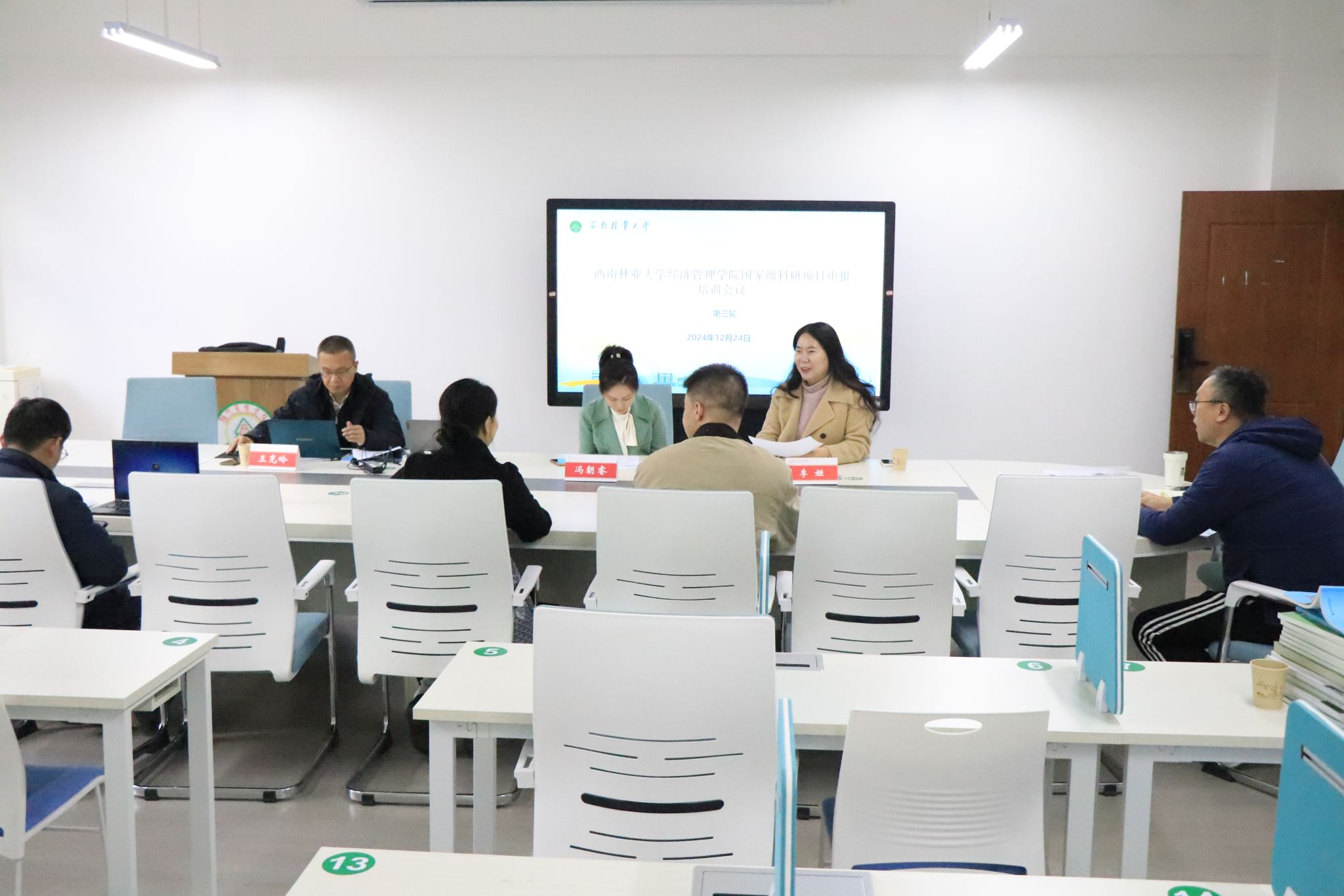 为扎实推进2025年度国家基金项目申报工作,进一步提升申报质量,3044永利集团于12月24日举办了2025年度国家基金项目申报第三轮选题论证会。此次会议邀请到云南大学王克岭教授和昆明理工大学冯朝睿教授,为有意向申报2025年度国家基金项目的教师们进行一对一指导。本次培训会由副经理李娅教授主持。