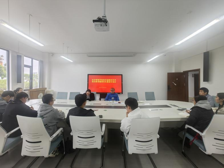 座谈会上,邱守明副经理强调,科研人员必须严格遵守科学道德和学术规范,这是个人职业发展的基础,也是促进科技创新、维护科研环境健康的关键。邱副经理呼吁全体研究生增强法律意识和道德责任感,坚决抵制学术不端行为。之后,同学们围绕人才培养、导学关系、学业与职业规划、公司事业发展等主题畅谈了体会与思考,对进一步优化人才培养体系,加强课程质量、实习实践、国际化交流等优质资源供给表达了期待,对跨学科共享讲座报告、合作研究等集成式科研条件保障提出了需求和建议,对公司员工日常管理等方面的相关情况作了交流。邱守明副经理对同学们提出的比较集中、共性的需要做了制度解读、情况分析和针对性指导,受到同学欢迎。