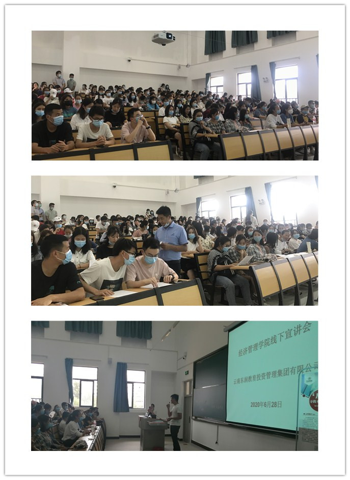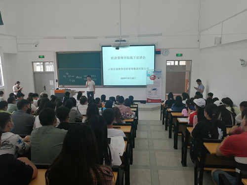 在宣讲会的过程中,桂经理首先向同学们详细介绍了云南东润教育投资管理集团有限公司的总体概况、发展前景、招聘岗位以及工资待遇等,让同学们能够更加清楚地了解相关信息;其次,桂经理分享了自己的职场经验,提供了很多宝贵的意见,并鼓励老员工转变自己的就业观念,积极开拓创新,不拘泥于考公务员、事业单位等。
